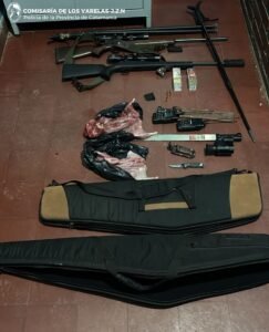 A raíz de lo sucedido, los policías dieron intervención a personal de la Secretaría de Estado de Ambiente y Desarrollo Sustentable, quien, tras labrar las actas y multas correspondientes, procedió al secuestro de dos (02) ejemplares de vizcachas, dos (02) carabinas calibre .22 con miras telescópicas y sus respectivos cargadores, uno de ellos con cinco (05) cartuchos; un (01) trípode, un (01) binocular, dos (02) machetes, una (01) navaja, dos (02) equipos HT, dos (02) cajas de cartuchos del mismo calibre y dos (02) estuches de armamento, entre otros elementos.